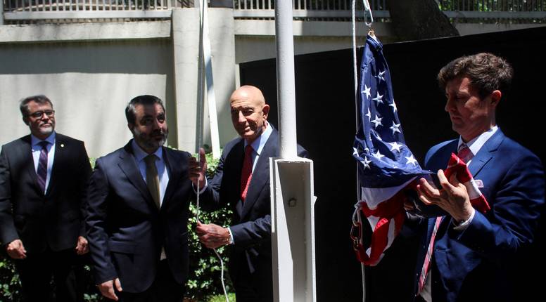Izaslanik Sjedinjenih Država za Siriju Thomas Barrack podigao je u četvrtak američki barjak iznad rezidencije veleposlanika u Damasku prvi put otkako je veleposlanstvo zatvoreno 2012. godine, godinu dana nakon izbijanja građanskog rata. Nakon više mjeseci relativno slabog angažmana s novom sirijskom vlašću, SAD je posljednjih tjedana intenzivirao veze.