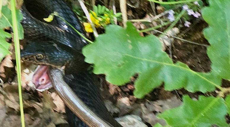 - Crna zmija je crni gad, Hierophis carbonarius, a žrtva je sljepić, Anguis fragilis. Inače, crni gad se hrani zmijama i gušterima osim malim sisavcima i pticama. Uz Kvarner nastanjuje i Istru - rekao je.