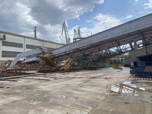Jak vjetar i obilna kiša doveli su do rušenja velike portalne dizalice te oštećenja imovine, proizvodnih hala i radnih prostora..