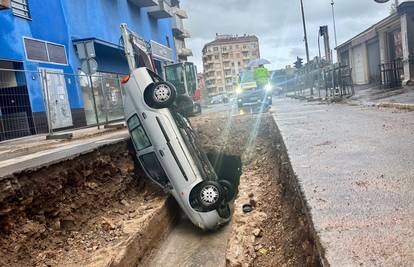 Vozač je zajedno s automobilom završio u kanalu, odnosno rupi koja se nalazi ispred dječjeg vrtića u Rijeci. Srećom, vozač je prošao bez ozljeda, ali sam prizor izgleda prilično dramatično.
