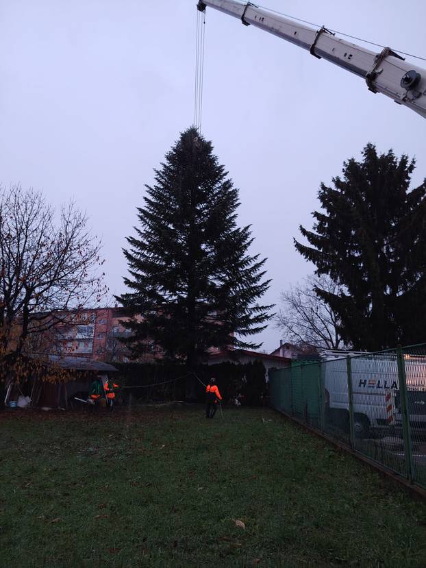 - Došla je dizalica od 120 tona da je digne preko ograde. Ponosan sam jako - kaže vlasnik. Juratovac procjenjuje da je jelka stara do 40 godina.