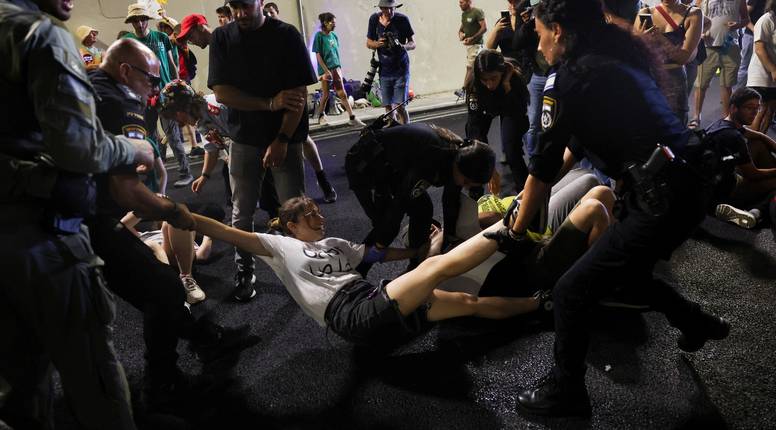 Prosvjednici su blokirali ceste diljem Izraela, uključujući i glavnu autocestu u Tel Avivu, mašući plavo-bijelim izraelskim zastavama i žutim zastavama koje simboliziraju solidarnost s taocima.