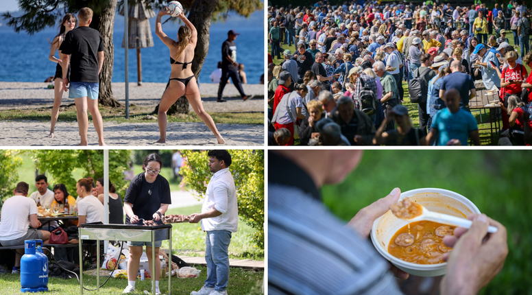 Sunce i visoke temperature izmamile su tisuće građana na proslavu Praznika rada diljem zemlje. Tradicionalno okupljanje uz grah, glazbu i druženje nije izostalo ni ove godine, a u mnogim parkovima i izletištima tražilo se mjesto više. U redu za grah čekalo se satima, nogi su dan iskoristili za roštiljanje, šetnje u prirodi, a hrabri su se i okupali u moru.