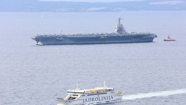 Najveći ratni brod na svijetu, nosač zrakoplova USS Gerald R. Ford (CVN 78) ponovno ide prema Splitu, a 24sata su prvi dobili ekskluzivne fotografije kako se približava splitskoj luci.