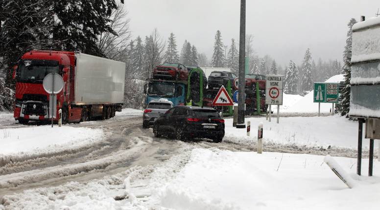 Gorski kotar pod snijegom, bura stvara probleme na cestama, a kamioni ne mogu prema moru. Vozače čekaju gužve i ograničenja