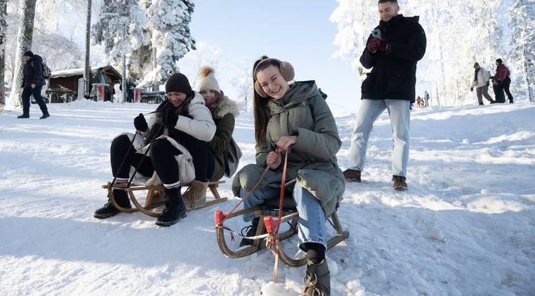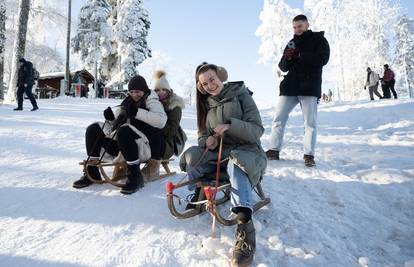 Sunce je provirilo na zagrebačkom Sljemenu. Zagrepčani su subotu odlučili provesti sanjkajući se i šetnjom kroz centar grada