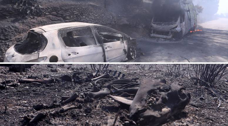 FOTO UŽASA Uz cestu su kosti izgorjele životinje. Vatrena stihija progutala aute, kuće...