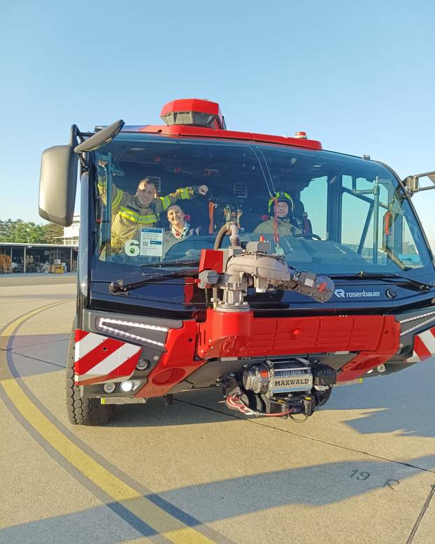 Potvrdno mu je odgovorila, a onda je pao poljubac i čvrsti zagrljaj. Nakon toga su se provozali vatrogasnim vozilom po pisti.