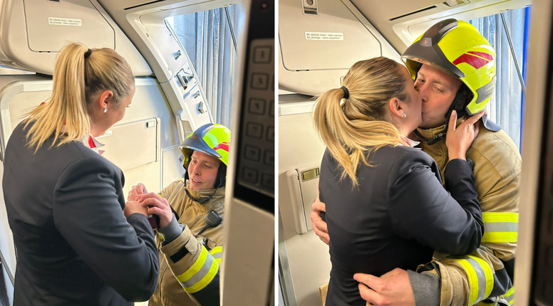 FOTO Vatrogasac u zagrebačkoj zračnoj luci zaprosio stjuardesu: 'Kad je rekla da, stres je nestao'