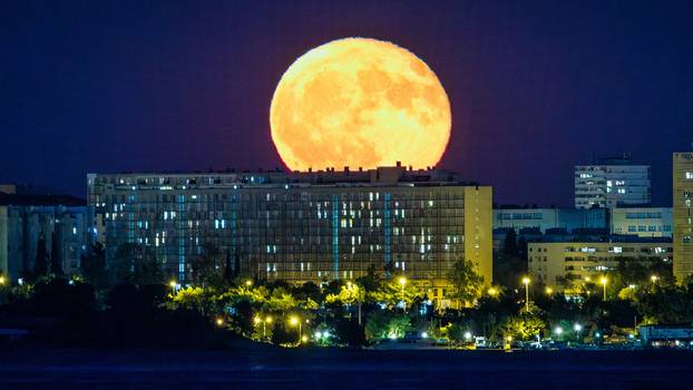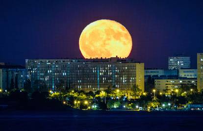 Fotograf Pixsella uhvatio je prekrasan prizor na nebu iznad Splita. Puni Mjesec obasjao je grad. Na fotografijama se vidi zgrada 'Kineski zid' i veličanstveni Mjesec u pozdaini.