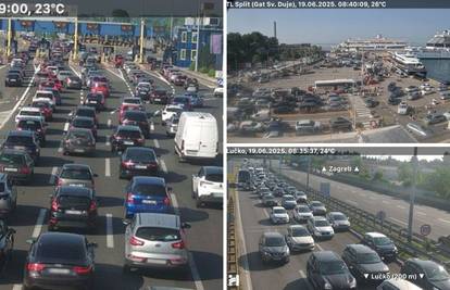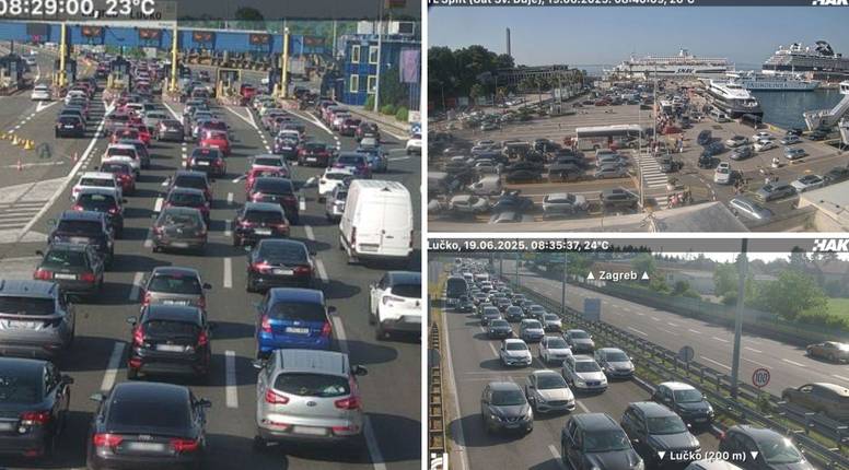 Četvrtak je za mnoge stanovnike Hrvatske neradni dan, samo treba spojiti s petkom i eto savršenog dugog vikenda od četiri dana... A kad imate nekoliko dana slobodno, a temperatura u zraku ide više od 30 stupnjeva Celzijevih, onda je šteta ne otići na more. Upravo na tu ideju došli su brojni Hrvati i turisti, pa od ranih jutarnjih sati četvrtka na autocestama i graničnim prijelazima vladaju gužve. A zagužvalo je i u splitskoj trajektnoj luci. "Pojačan je promet na cestama u smjeru mora, mogući su zastoji i vožnja u koloni. Zbog povećane gustoće prometa vozi se usporeno: -na prilazu NP Lučko u smjeru mora iz smjera čvora Buzin (A3), kolona je oko 7 km -na autocesti A1 između čvorova Lučko i Bosiljevo 2 u smjeru mora -na DC1 između Gornjeg Stupnika i Rakovog Potoka u smjeru mora -na autocesti A2 na NP Trakošćan u smjeru Zagreba, kolona je 2,5 km", pišu iz HAK-a u četvrtak nešto prije 9 sati...