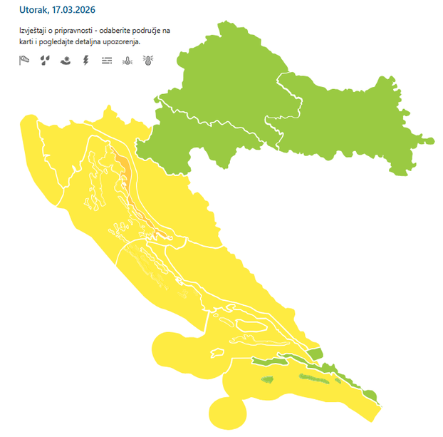 Građanima se savjetuje oprez zbog mogućih vremenskih nepogoda, osobito onima u priobalju i gorskim krajevima.