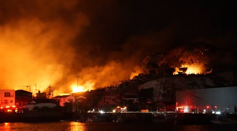 Požar je zahvatio više od 170 zgrada u južnom japanskom obalnom gradu, gorio je preko noći i još uvijek nije u potpunosti ugašen, priopćila je u srijedu nacionalna vatrogasna agencija.