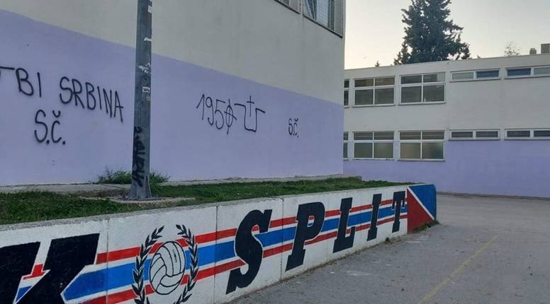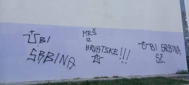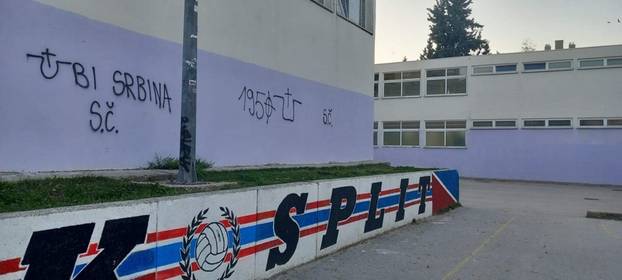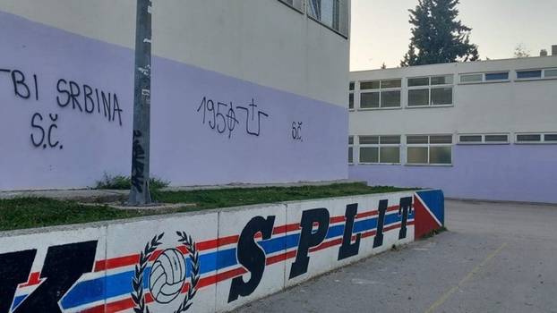 Grafiti s porukama mržnje prema Srbima osvanuli su ujutro na zgradi školske dvorane na splitskim Plokitama. Na zidu su ispisane poruke "Ubij Srbina" i "Mrš iz Hrvatske", uz ustaško slovo "U".