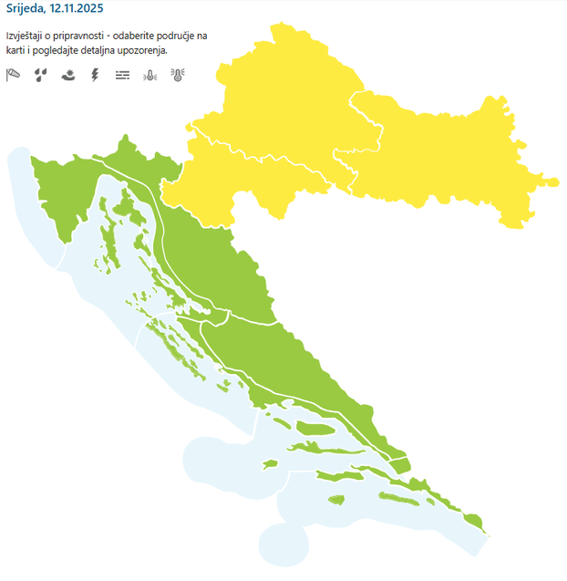 - Vjetar većinom slab, na Jadranu do umjeren sjeverozapadni, ujutro uz obalu i bura. Najviša temperatura jako će ovisiti o dugotrajnosti magle, na kopnu većinom od 7 do 12, u Gorskom kotaru i Lici i viša, a na Jadranu od 16 do 20 °C - navode iz DHMZ-a.