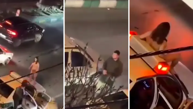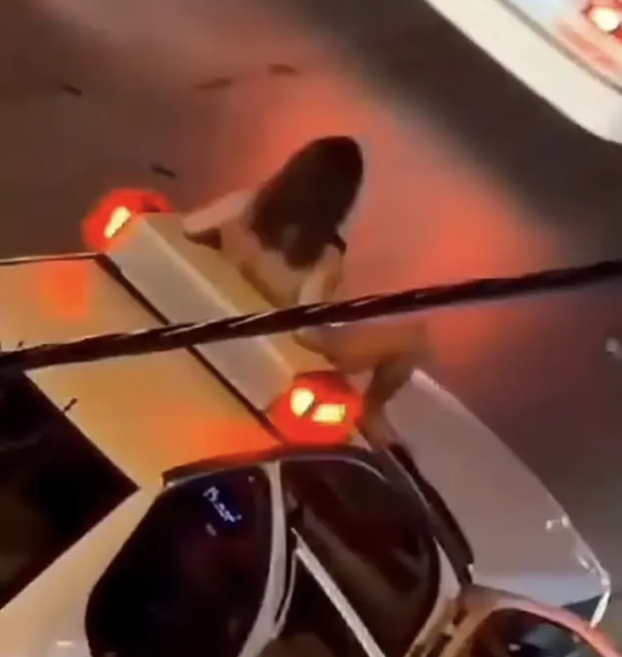 Potom se popela na vjetrobransko staklo auta, sjela i raširila noge, vidi se na snimci.