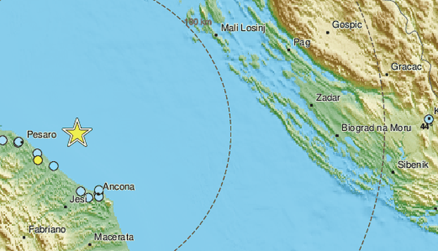 Potres magnitude 4,7 po Richteru zatresao je istočnu obalu Italije. Epicentar potresa bio je u Jadranskom moru, osjetili su ga u Pesaru, Anconi, Fanu, stoji na stranicama EMSC-a.