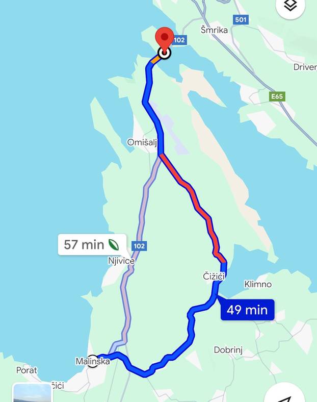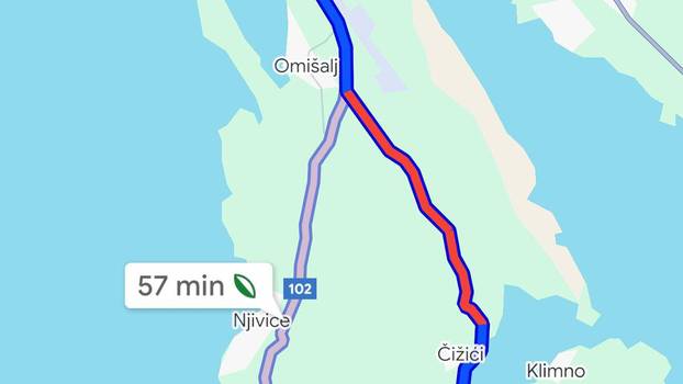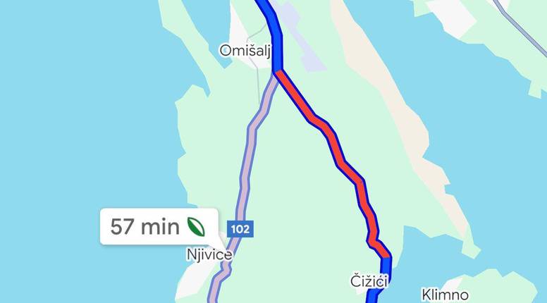 Na krku je nastao prometni kaos, kako izvještava HAK kolona je u smjeru kopna od Malinske. Prema aplikaciji Google maps, za 21 kilometar, od Malinske do Krčkog mosta vozačima treba čak 49 minuta.