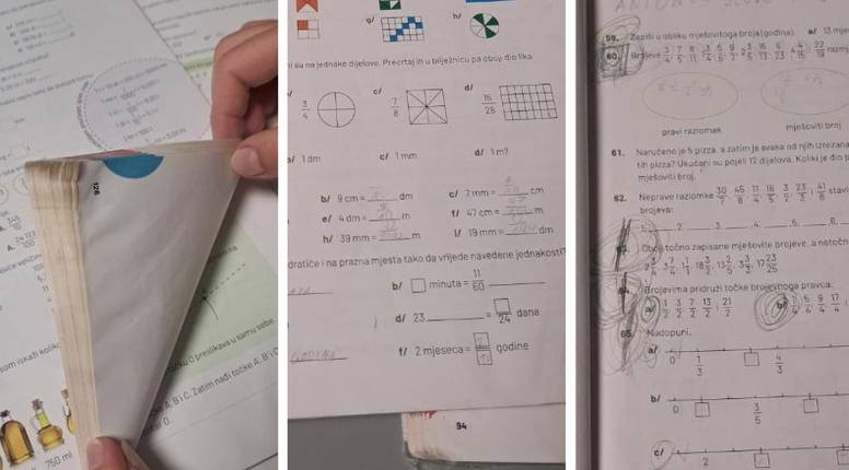 Pogledajte kakve smo udžbenike dobili. Osim što su u lošem stanju, radni udžbenik iz matematike je bio i popunjen. Zar se radni udžbenici ne daju novi, napisao nam je čitatelj koji nam je poslao fotografije udžbenika svoje kćeri.