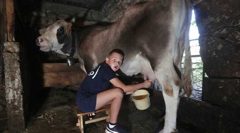 Ivan Čagalj (7) krenuo je u prvi razred. Prije škole najveći mu je gušt pomusti krave. Svom je pokojnom djedu dao čvrsto obećanje da će kad poraste nabaviti krave, ovce i konja i voditi ih svaki dan na ispašu