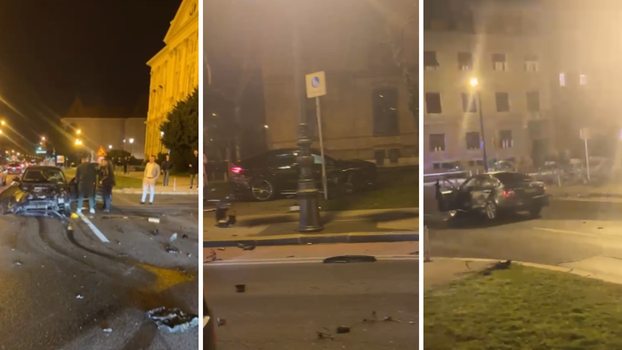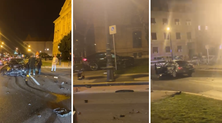 Muškarac (35) je ok 1 ujutro u Mercedesu prošao kroz crveno i udario u Škodu koju je vozio 51-godišnjak. Od siline udarca, Škoda je udarila u rubnik, a Mercedes se zabio u stup semafora, dva parkirana bicikla, metalni držač za bicikle, zaštitni metalni stup te prometni znak ispred Akademije dramske umjetnosti.