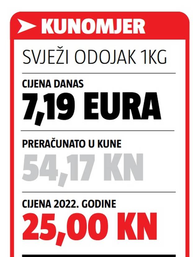 Usporedbe radi, prije četiri godine cijena kilograma svježeg odojka bila je 25 kuna. Danas je ona 7,19 eura ili, ako preračunamo u kune, čak 54,17 kuna. U prijevodu, duplo skuplja!
