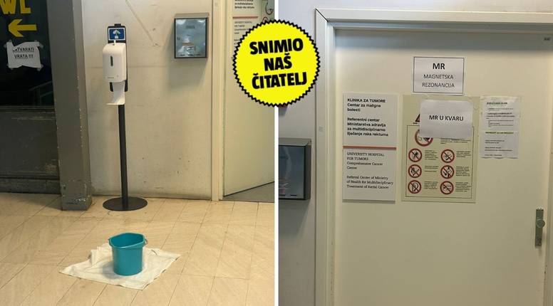 Pacijente zagrebačke Klinike za tumore ponovno je dočekala ceduljica na vratima s natpisom da je MR (uređaj za magnetsku rezonanciju) u kvaru. Ali ne samo to, već ih je i nasred čekaonice u prizemlju dočekala i kanta u koju kaplje voda.