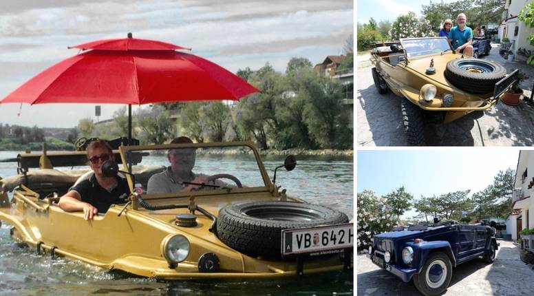 Maria Doll i Rupert Haller inače su iz Salzburga, no zaljubivši se u Istru tu su kupili kuću u kojoj provode veći dio godine. Ispred u dvorištu su tri vojna vozila koje većina ljudi nema prilike vidjeti – jedno je Volkswagen iz 1943., drugo također VW iz 1974. i već spomenuta rijetka amfibija dizajnirana u Porscheu, dok u Salzburgu u garaži imaju i rusko vojno vozilo iz 1973. Sva su vozila u besprijekornom stanju, restaurirana i održavana s pažnjom vrijednom divljenja. A najzanimljivija priča vrti se oko amfibije, odnosno, schwimmvagena, kako ga zovu Maria i Rupi. Vozilo je proizvedeno za njemačku vojsku tijekom Drugog svjetskog rata i nije poznato gdje se nalazilo dok su trajala ratna previranja, no u proljeće 1945. amfibija se vratila u Austriju s vojnicima koji su pred Rusima bježali do američke baze. I samo što nisu bili došli do nje kad je auto ostao bez goriva. Htjeli su mu napuniti rezervoar, no shvatili su da je u kanisteru voda. Nije bilo druge i amfibiju su ostavili u šumi gdje je stajala nekoliko mjeseci.
