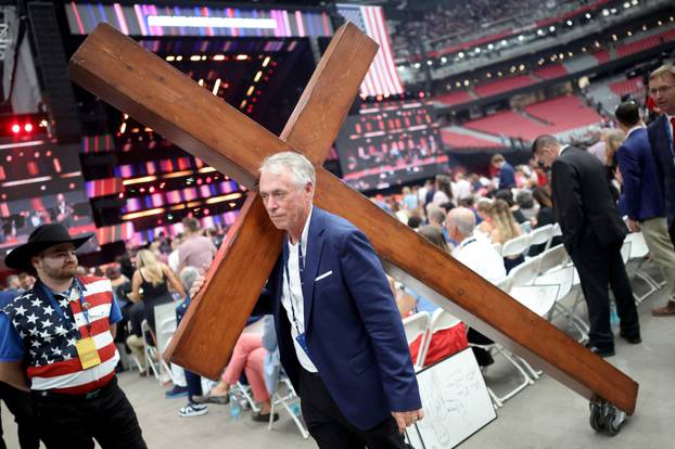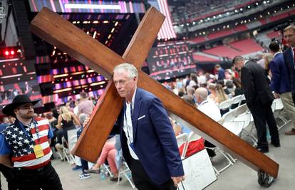 Na stadionu State Farm u Glendaleu, gdje se u nedjelju održala javna komemoracija Charlieju Kirku, osnivaču konzervativne organizacije Turning Point USA, među tisućama okupljenih pojavio se i jedan neobičan gost s križem na kotačićima. Gost je Dan Beazley, 70-godišnjak iz Northvillea u Michiganu koji često s istim križem dolazi na politička i vjerska okupljanja.
