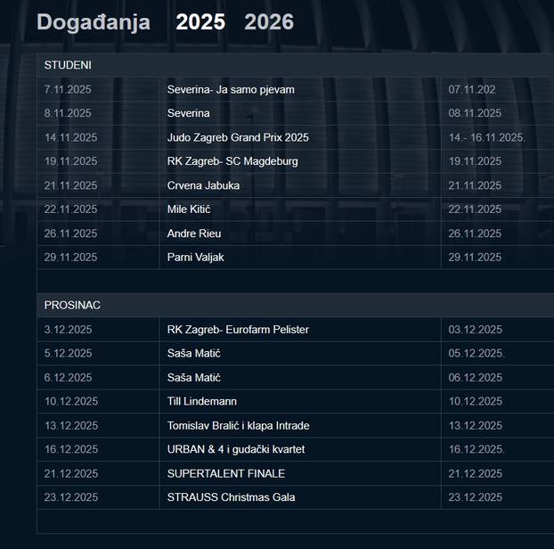 Iako je 27. prosinca najavljeno kako će Marko Perković Thompson (59) nastupiti u Areni Zagreb, na službenom rasporedu događanja Arene za prosinac, objavljenom na stranicama podružnice Zagrebačkog holdinga, još uvijek nema njegovog koncerta.