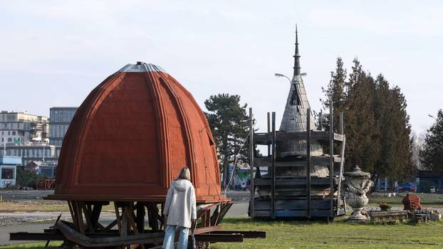 Gledam u te tornjeve i skulpture svaki dan kad prolazim ovuda putem na posao, nisam nikad zastao detaljno pogledati, baš hoću sad kad znam o čemu se radi, kaže nam muškarac na Zagrebačkom velesajmu. Na travnatoj smo površini između paviljona 16 i 35, istočni ulaz na Velesajam. Grad Zagreb ovamo je smjestio tornjeve i kupole, vijence i skulpture sa starih građevina u centru teško oštećenih u potresu 2020. Kako su zbog oštećenja ugrožavali stanare i prolaznike na ulicama, skinuli su ih i dovezli ovamo, čekaju povratak na obnovljene zgrade, restauraciju, replike - neki novi život. Djelić daleke zagrebačke povijesti i arhitekture preselio se preko Save, u Novi Zagreb, simbolično.