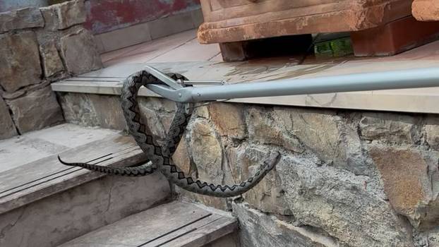 Dalmatinski udav ili kravosas je, kažu stručnjaci, bezopasan za ljude. No stanovnici Runovića nisu do sada sretali pa je izazvao paniku.