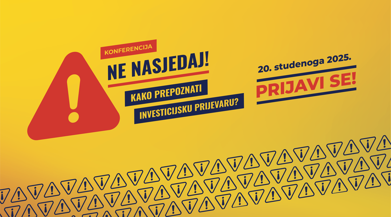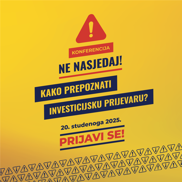 U trenutku kada investicijske prijevare postaju sve sofisticiranije i sve agresivnije ciljaju građane putem lažnih oglasa, uvjerljivih poziva i „sigurnih“ ulaganja, cilj konferencije jest pružiti jasan i praktičan pregled najčešćih prijetnji, načina prepoznavanja rizika te postupanja u slučaju sumnje na prijevaru.