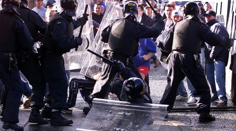Javni neredi izbili su u središtu Ballymene u Sjevernoj Irskoj nakon prosvjeda zbog navodnog slučaja seksualnog napada u ponedjeljak, a policija je izjavila da je nekoliko projektila bačeno na policajce