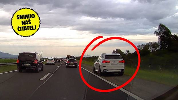 Ovo je bilo u subotu oko 19 sati, na autocesti A1 prije skretanj za Jastrebarsko u smjeru Zagreba, rekao nam je čitatelj koji je poslao snimku baje u BMW-u koji juri zaustavnom trakom, dok ostali voze u koloni.