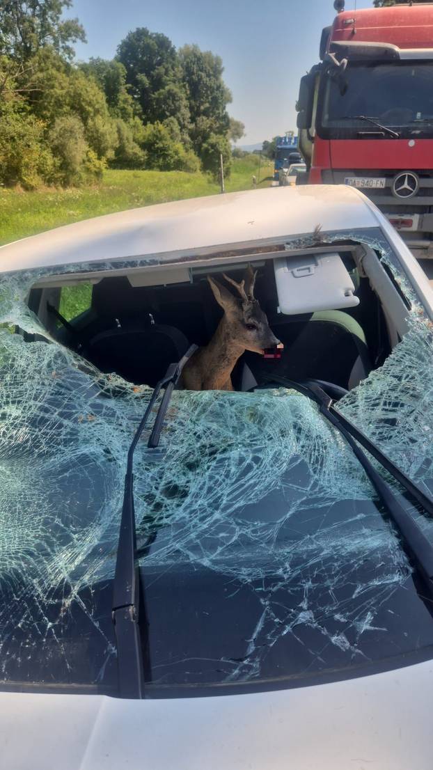 - Izletio je s lijeve strane iz kanala i meni direkt u prozor, koji je razbio i cijeli završio u automobilu. Oboje smo živi, mene su prevezli u bolnicu u Pakracu, imam ovratnik jer me boli vrat, izgreban sam po licu, rukama i nogama od stakla - ispričao nam je.