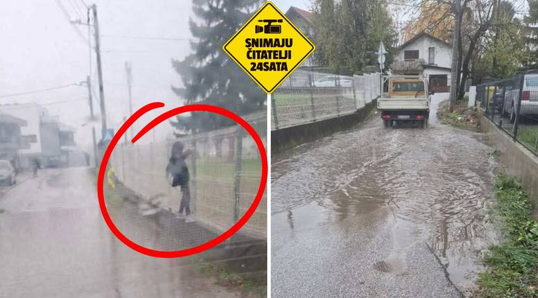 - Pogledajte kako to izgleda. Tu je ova lokva, sve je puno vode i blata. Nema nogostupa. Djeca su bez ikakve zaštite. Kad padne malo jača kiša, djeca se doslovno penju po ogradi kako bi suha došla u školu - kaže nam čitatelj.