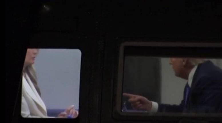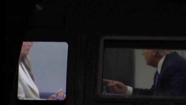 Donald Trump i prva dama Melania Trump vodili su ozbiljan razgovor kada je Marine One sletio u Washington u utorak navečer. U videu se vidi kako 55-godišnja Melania odmahuje glavom i gestikulira rukom prema 79-godišnjem Donaldu prije nego što ju je prekinuo pokazujući prstom.