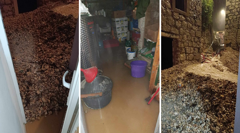Noćas je velika količina kiše stvorila bujice koje su nosile sve pred sobom, a brojni mještani zbrajaju štete u kućama, konobama i vrtovima