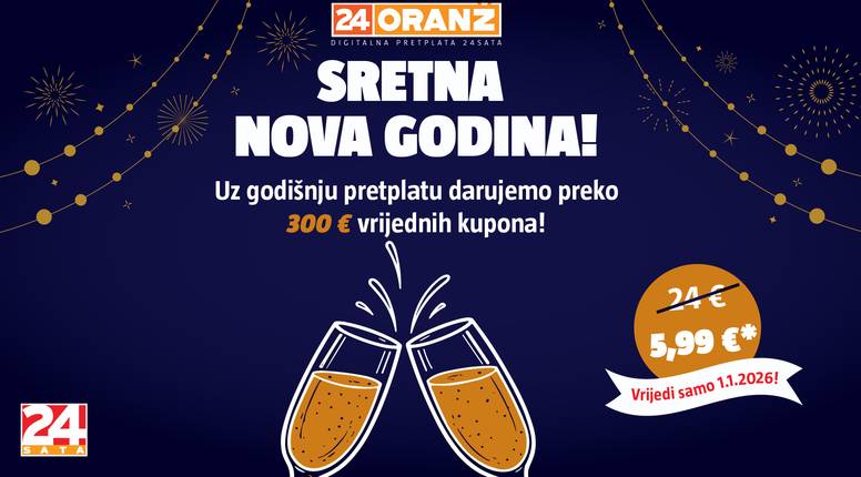 Povodom proslave Nove 2026. godine aktiviraj godišnju pretplatu za samo 5,99 € i dobivaš pristup cijelom sadržaju portala 24sata - najnovijim vijestima, dubinskim analizama i inspirativnim pričama. Ova posebna ponuda donosi ti više od same pretplate: preko 300 € vrijednih kupona za razne proizvode i usluge!