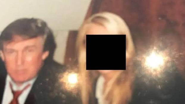 Na jednoj crno-bijeloj fotografiji, Trump se smiješi s nekoliko žena koje su pored njega. Lica žena su zacrnjena. Druga slika prikazuje Trumpa kako stoji pored Epsteina, a treća, manje jasna slika prikazuje ga kako sjedi pored druge žene, čije se lice također ne vidi. Nije jasno kada ili gdje su fotografije snimljene.