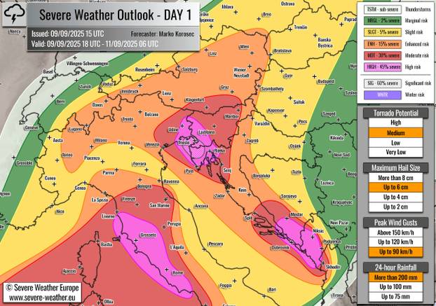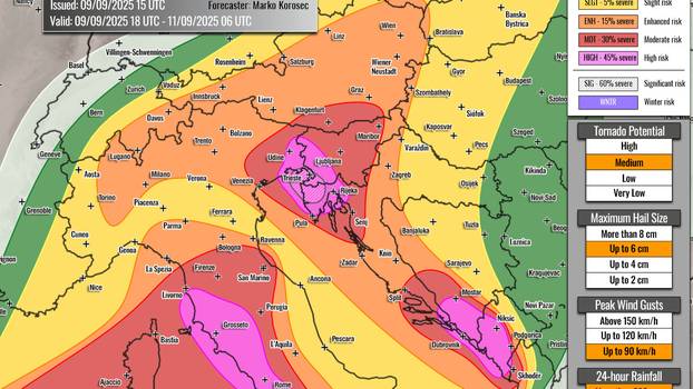 Analize europskih meteoroloških servisa idu korak dalje i upozoravaju na potencijalno povijesne količine oborina. Prognoza Severe Weather Europe predviđa da bi u najpogođenijim područjima, koja uključuju sjeverozapadnu Hrvatsku (Istra), jugozapadnu Sloveniju i sjeveroistok Italije, u razdoblju od 24 sata moglo pasti između 200 i 400 mm kiše. Takve količine, ako se ostvare, neizbježno bi dovele do katastrofalnih bujičnih poplava.
