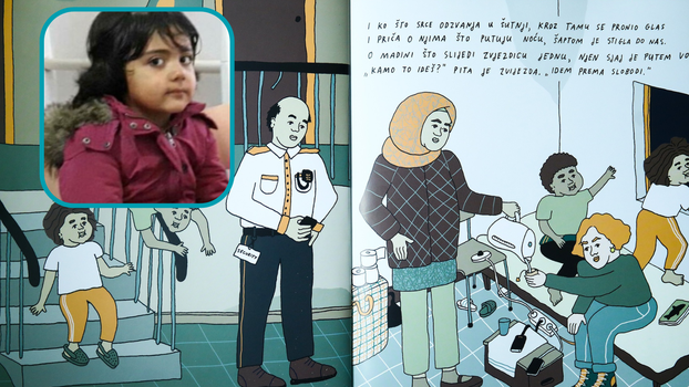 Uskoro stižem u novi dom, još prije kraja noći, još jedna pruga, beskrajno duga, i ja ću, zvijezdo, doći, napisala je književnica Olja Savičević Ivančević u svojoj slikovnici po imenu Djeca s igrališta Madine Hussiny. Nad potresnim redovima koje je ispisala, Ena Jurov nacrtala je Madinu koja za ruku čvrsto drži svoju majku usred noći, usred šume i hladnoće koja kao da isijava led na tim stranicama. Tu su Madinini brojna braća i sestre, sve jedan bespomoćniji od drugog, svi pred prugom, pred smrću zapravo, jer radi se o zadnjem danu Madinina kratkog života. I ta smrt strši iz papira, iz slike, iz slova... Na to se ne možemo naviknuti. I zato, nova slikovnica doslovno boli.