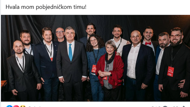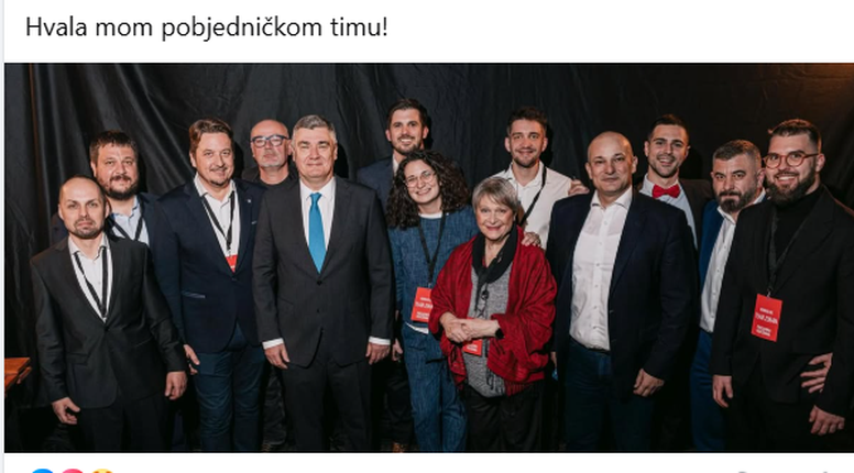 Predsjednik Zoran Milanović je objavio fotografiju svog pobjedničkog tima na izborima uz poruku zahvale. No, nije napisao imena 12 ljudi uz njega na fotografiji od kojih je većina i nepoznata široj javnosti.