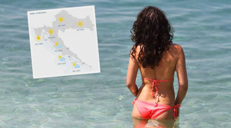 Jutra će biti topla, na kopnu od 14 do 18°C, a na Jadranu od 23 do 28°C. Najviše dnevne temperature penjat će se od 30 do 34°C, dok će se Jadran i unutrašnjost Dalmacije pržiti na 34 do 38°C.