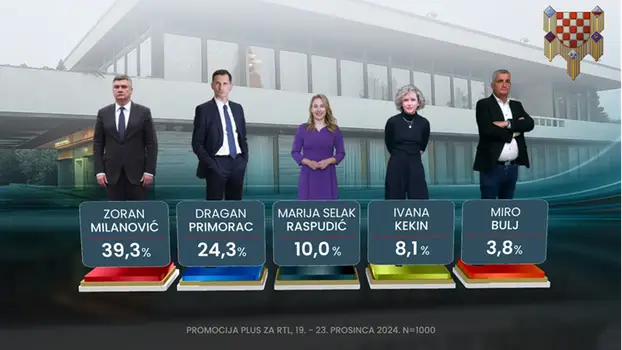 Prema najnovijim anketama prije prvog kruga predsjedničkih izbora koju je objavio RTL, Milanović uvjerljivo vodi sa 39 posto ispred HDZ-ovog kandidata Dragana Primorca koji ima 24.3 posto.