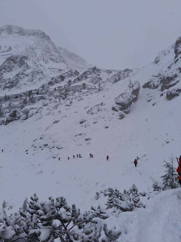 Na području gdje se lavina obrušila na hrvatske planinare ima preko pola metra snijega, a pripadnici slovenske gorske službe spašavanja (GRZS) morali su prtiti snijeg kako bi došli do mjesta nesreće.