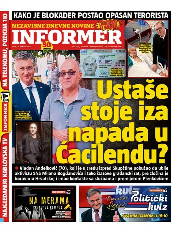 "Ustaše stoje iza napada u Ćacilendu", stoji na naslovnici ovog bijednog režimskog glasila. Tvrde da je napadač "imao kontakte sa službama i premijerom Plenkovićem"...