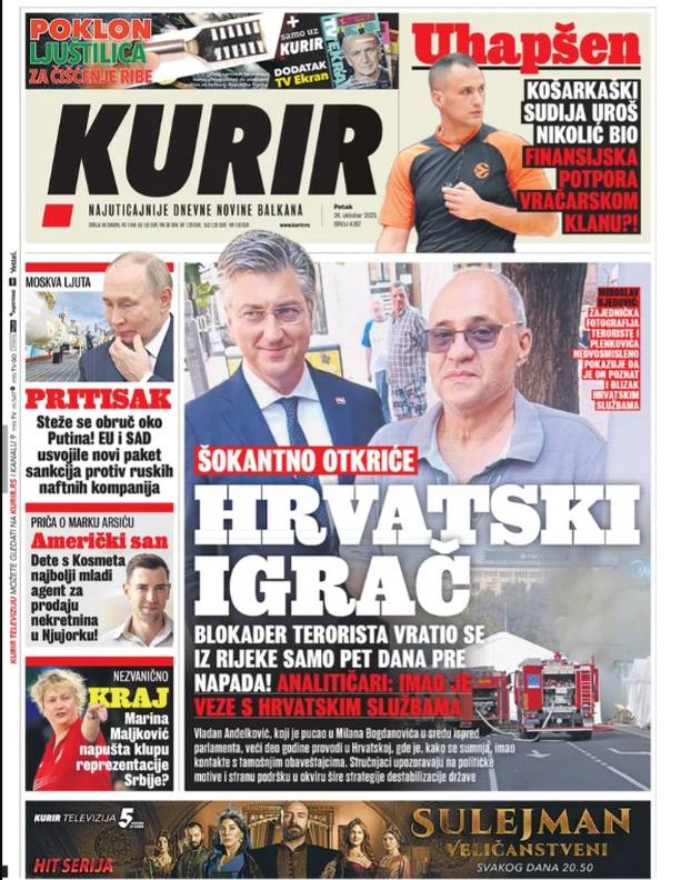 "Pretpostavlja se da je poslije spomenute fotografije s Plenkovićem, hrvatska obavještajna služba, kao svaka ozbiljna agencija te vrste u svijetu, preuzela obradu dorćolskog blokadera. Ukoliko se to ispostavi da je to istina, srpski državni organi utvrdit će što je bio njegov istinski motiv i zadatak te operacije", piše Kurir.