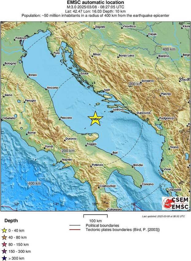U Jadranskom moru jutros u 9:27 zabilježen je potres magnitude 3,3. Prema podacima EMSC-a, epicentar je bio 46 kilometara jugozapadno od Vela Luke na Korčuli, na dubini od 18 kilometara.